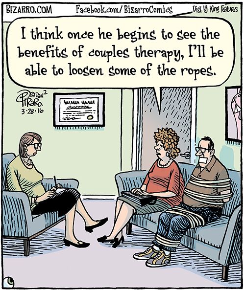 Firstly, you may wish to acknowledge that (1), based on rigorous research(20.) demonstrating sex-based differences in perceptions of therapist responsiveness, partners may vary according to sex in the hopes, needs, and expectations they bring to couples therapy, and, (2), there is some truth to male presentiments of this ilk; the literature is replete