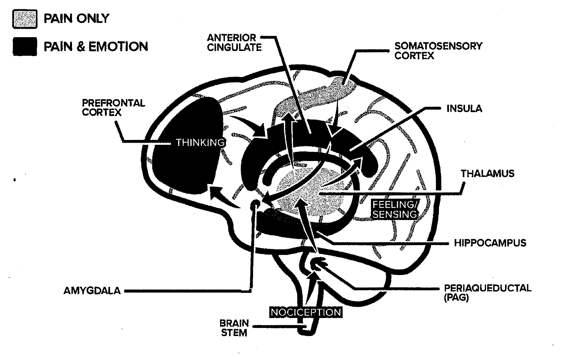 There is no single pain center in the brain..multiple regions are involved including those involved in emotion, cognition, memory, and decision-making.(1.)